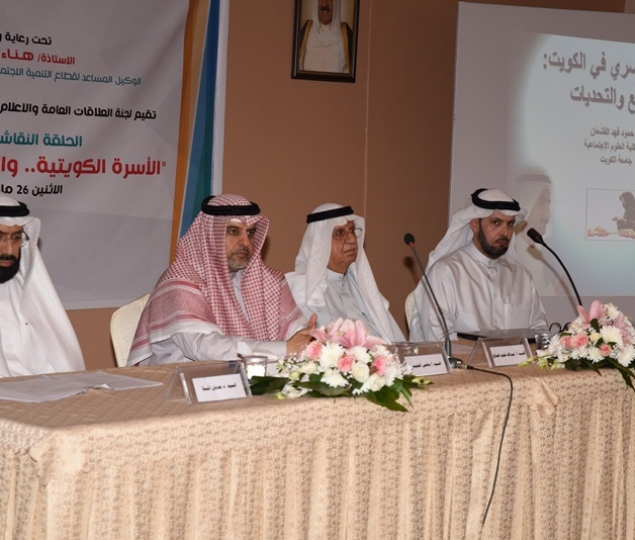 تحت رعاية وحضور الأستاذة / هناء الهاجري الوكيل المساعد لقطاع التنمية الاجتماعية - وزارة الشؤون الاجتماعية اقامت لجنة العلاقات العامة والاعلام في رابطة الاجتماعيين الكويتية خلقة نقاشية بعنوان " الأسرة الكويتية .. والتحديات المعاصرة " وذلك يوم الاثنين 26 مارس 2018 ، وقد بدء الحفل بكلمة السيدة/ هناء الهاجري الوكيل المساعد لقطاع التنمية الاجتماعية – وزارة الشؤون الاجتماعية حيث قالت :-