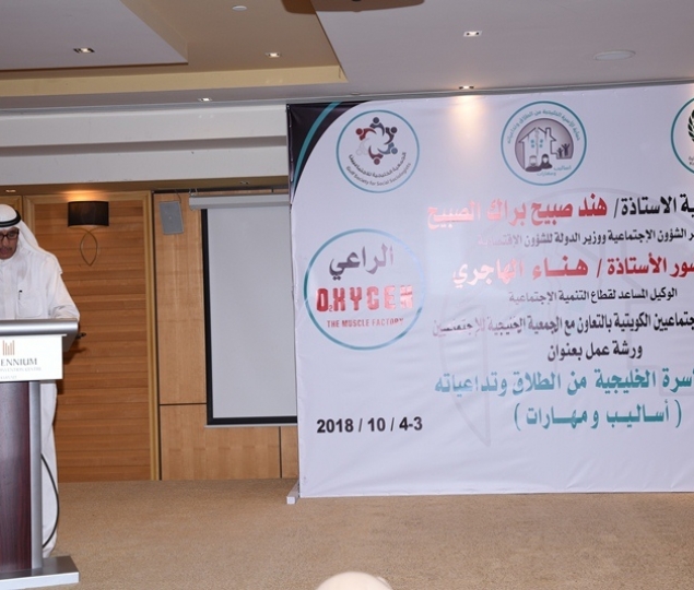تقيم رابطة الاجتماعيين الكويتية بالتعاون مع الجمعية الخليجية للاجتماعيين ورشة عمل تحت عنوان "حماية الأسرة الخليجية من الطلاق وتداعياته-(اساليب ومهارات)"، برعاية معالي وزير الشؤون الاجتماعية ووزير الدولة للشئون الاقتصادية الاستاذة/ هند صبيح براك الصبيح، وبحضور الوكيل المساعد لقطاع التنمية الاجتماعية الاستاذة / هناء الهاجري، وعدد كبير من الشخصيات الكويتية والخليجية ورؤساء الجمعيات والروابط في دول مجلس التعاون الخليجي